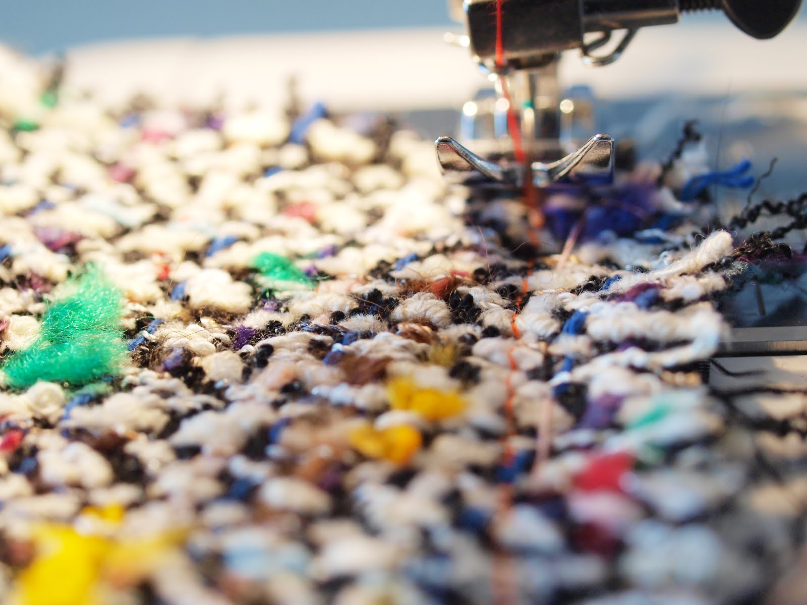 Piquez à 1,5 cm du bord, selon le tracé. En arrivant dans la pointe, prenez soin de réaliser un point horizontal transversal afin d’obtenir une pointe plus nette une fois retournée sur l’endroit.